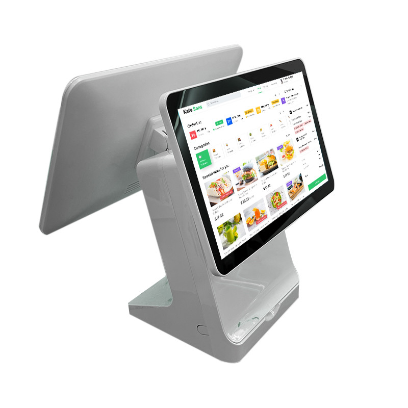 Đặt hàng nhà hàng Máy bán hàng Android với màn hình kép 15,6 inch và CPU Intel Celeron J1900 6